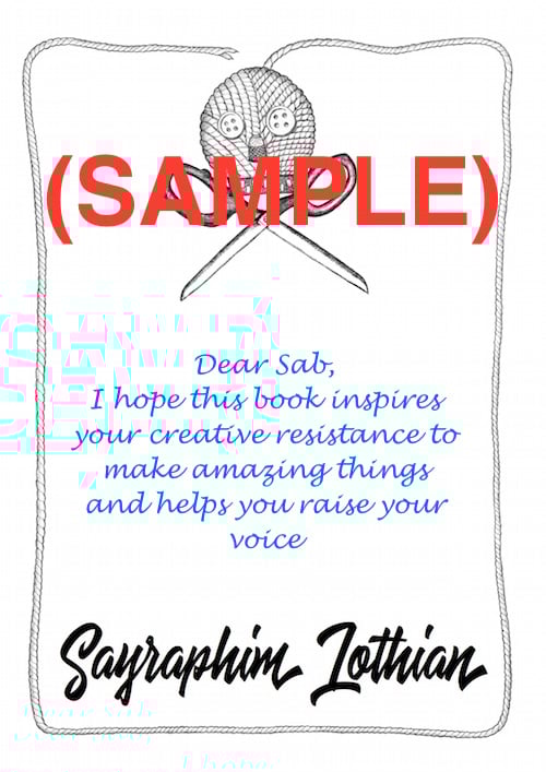 If you would like your copy of my new book, Guerrilla Kindness and Other Acts of Creative Resistance: Making A Better World Through Craftivism (http://amzn.to/2x5HSi8) signed by me, but you've bought it online, that might seem to be a problem, but I've got your solution right here... I'll sign this spiffy book plate and post it to you. Then all you have to do is stick it in your copy and bam! Signed book!